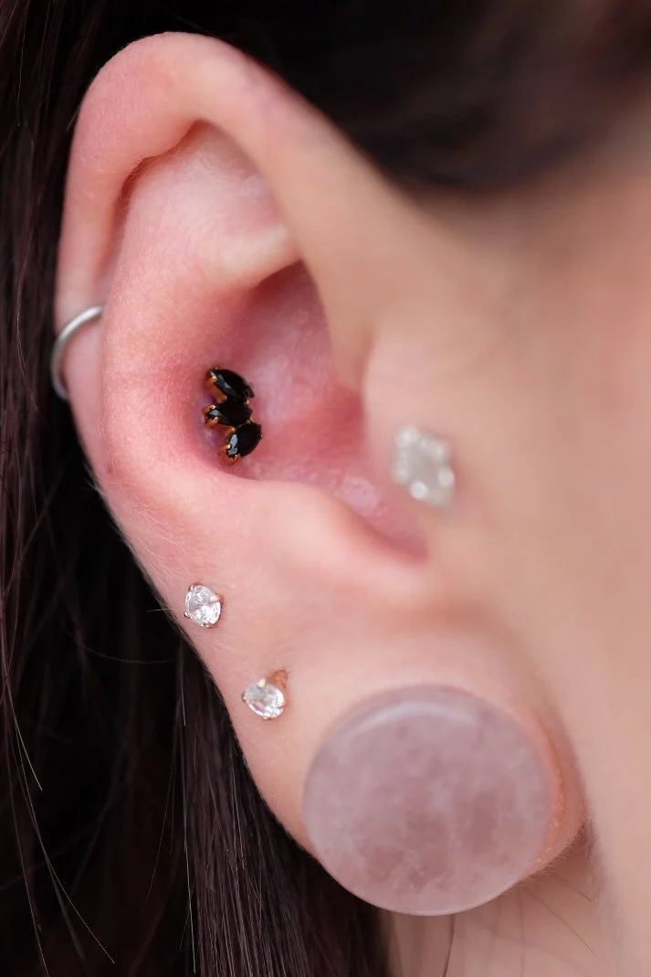 you can use the link to book your service online. new piercing, jewelry change, or downsize to some more comfortable posts or barbells after the initial swelling has subsided. it’s all there for you to pick. if you’re interested in a full curation for your jewelry you can call the shop and speak to our piercer about setting up a private time for their undivided attention.